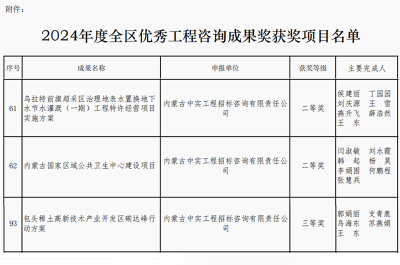 2025-04-168247 次2025年4月16日,内蒙古工程咨询协会公布了2024年度优秀咨询成果奖获奖单位名单,我司取得两个二等奖和一个三等奖,我司专业能力和服务质量再次获得行业的认可。此次获奖,不仅体…